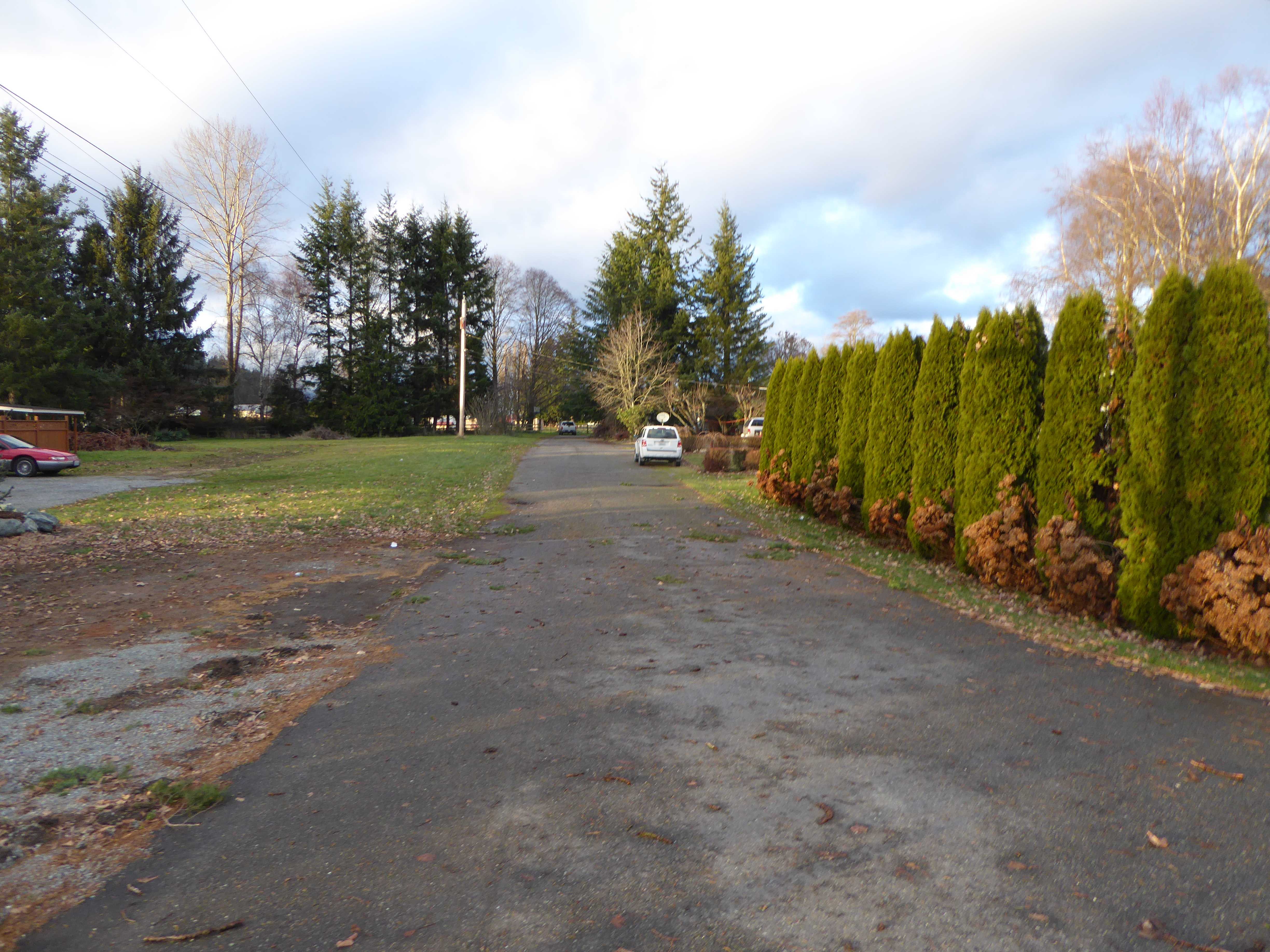 TAX 23AA DK 12; THAT PORTION OF THE WEST HALF OF THE NW1/4 SW1/4 OF SEC 27, TWP 35, RNG 4 DESCRIBED AS FOLLOWS; BEGINNING AT THE POINT OF INTERSECTION OF THE EAST LINE OF SAID SUBDIVISION WITH NORTH LINE OF THE STATE HWY RUNNING THROUGH SAID SUBDIVISION; THENCE SOUTH 60-23-30 WEST ALONG SAID STATE HWY RIGHT OF WAY LINE A DISTANCE OF 61.48 FEET TO THE TRUE POINT OF BEGINNING; THENCE CONTINUE SOUTH 60-23-30 WEST ALONG SAID STATE HWY RIGHT OF WAY LINE A DISTANCE OF 51.52 FEET; THENCE NORTH 15-40 WEST A DISTANCE OF 409.90 FEET, MORE OR LESS, TO THE SOUTHERLY RIGHT OF WAY LINE OF THE PUGET SOUTH & BAKER RIVER RAILWAY; THENCE EAST A DISTANCE OF 51.94 FEET, MORE OR LESS, TO A POINT WHICH LIES NORTH 15-40 WEST A DISTANCE OF 383.43 FEET FROM THE TRUE POINT OF BEGINNING; THENCE SOUTH 15-40 EAST A DISTANCE OF 383.43 FEET TO THE TRUE POINT OF BEGINNING